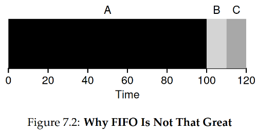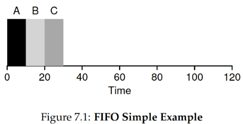 이러한 상황에서 운영 체제의 scheduler가 FIFO 정책을 사용한다면 아래와 같이 scheduling을 할 것입니다.