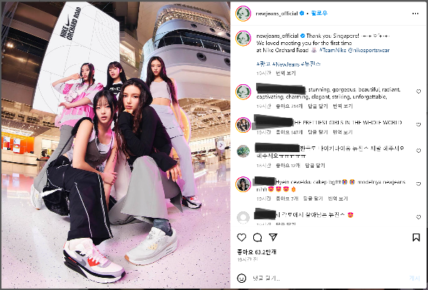 실제 인스타그램에 접속해 뉴진스(팬은 아니고 그냥 갑자기 생각난 그룹입니다.)의 최신 포스트를 보면 내용이 일치함을 볼 수 있습니다.