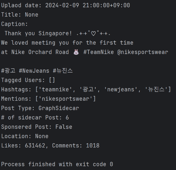 print("Hashtags:", post.caption_hashtags) # 해시태그 리스트