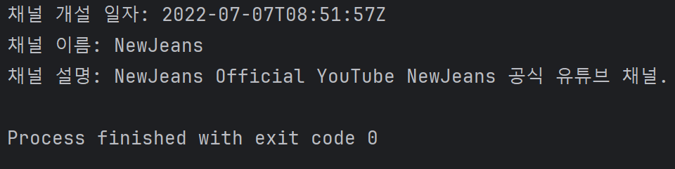 먼저 특정 채널의 정보를 확인을 위한 코드는 아래와 같습니다. 이 포스트에서도 뉴진스를 예시로 하여 시도했습니다.