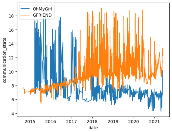 결과부터 얘기하자면 여자친구(GFRIEND)의 소통 지수가 오마이걸의 소통 지수보다 높은 상황에서 여자친구 그룹은 해체를 하게 됐습니다. 이로 인해 해체와 소통 지수와의 상관은 없다고 판단했습니다.