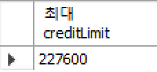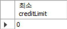왼쪽의 사진으로 creditLimit 열의 값 중 최솟값을, 오른쪽 사진으로 최댓값을 얻을 수 있습니다.