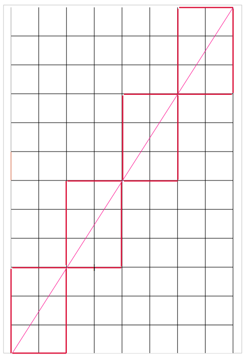 위 두 가지를 통해 우리는 가로가 w이고 세로가 h인 직사각형에서 쓸 수 있는 정사각형의 개수(n)를 일반화시킬 수 있다. 단 w와 h가 서로소인 경우로만 한정한다.