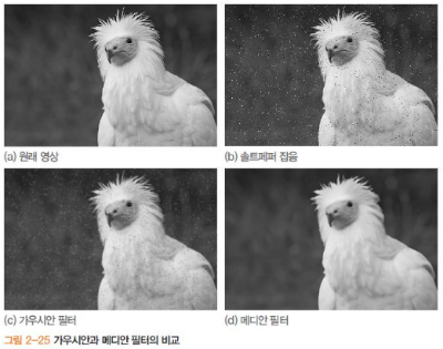 - 영역 연산: 이웃 화소(픽셀)의 명암 값에 따라 새로운 값 결정