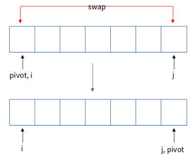 위의 사진 같은 상황이 되었다고 합시다. 지금처럼 i가 j보다 작은 경우 i번째 원소와 j번째 원소를 swap 합니다.
