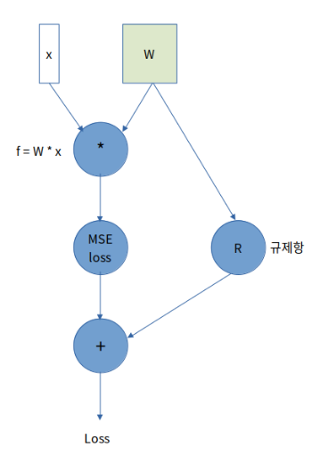 이런 식으로 그래프를 그리면 각 동그라미(노드)들을 하나의 모듈처럼 다룰 수 있게 됩니다. 구성의 일부가 바뀐다면 처음부터 다시 편미분을 하나하나 계산하지 않아도 된다는 큰 장점이 생깁니다. 만약 그림에서 적용된 mse loss가 아닌 cross entropy loss로 바꾼다면 loss 노드를 cross entropy loss로 바꾸기만 하면 됩니다.