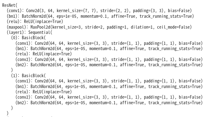 딥러닝 모델을 구현하거나 모델의 구조를 본 적이 있는 사람들은 Batch Normalization을 사용한 모델들을 몇 번 보셨을 것입니다. 예를 들어 ResNet이라 하는 CNN 구조를 따르는 모델이 있습니다. Pytorch에서 제공하는 resnet 모델의 구조를 살펴보면 'BatchNorm2d'를 통해 배치 정규화를 적용했음을 확인할 수 있습니다.
