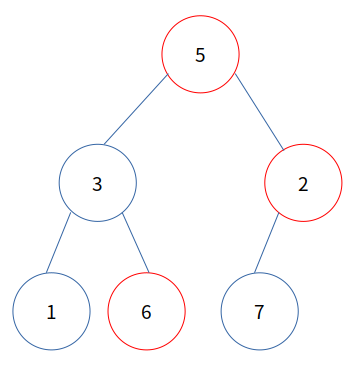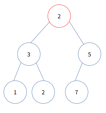 먼저 루트 노드인 7을 제거하고 마지막 노드인 5를 루트 노드에 씁니다.